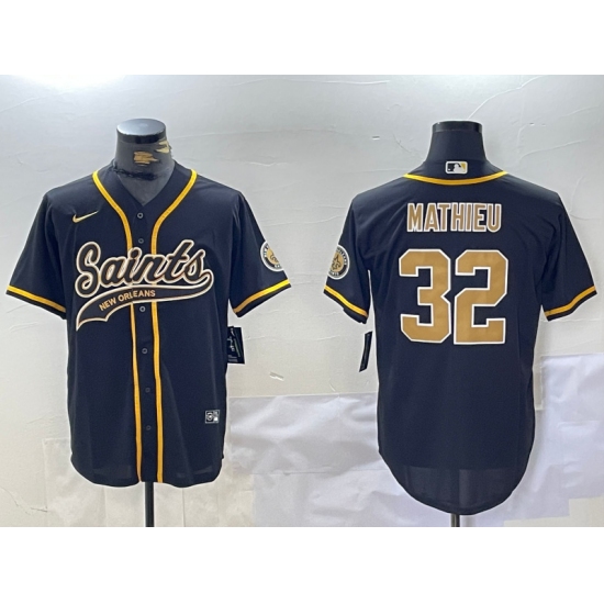 Men's New Orleans Saints #32 Tyrann Mathieu Black Nola Baseball Jersey