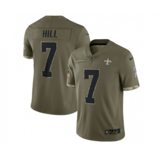 >Men's New Orleans Saints #7 Taysom Hill 2022 Olive Salute To Service Limited Stitched Jersey