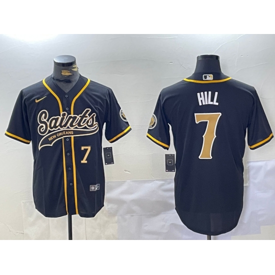 >Men's New Orleans Saints #7 Taysom Hill Black With Cool Base Stitched Baseball Jerseys