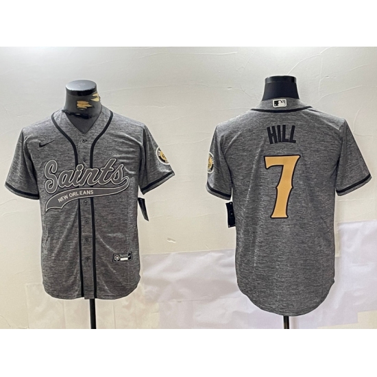 >Men's New Orleans Saints #7 Taysom Hill Grey With Cool Base Stitched Baseball Jersey
