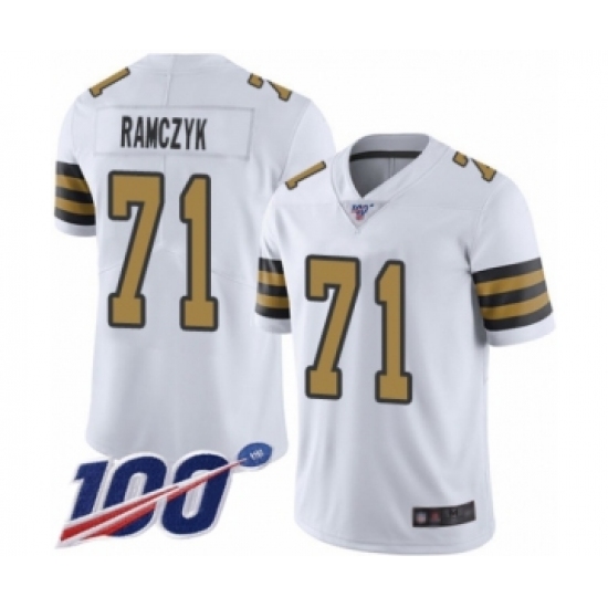 >Men's New Orleans Saints #71 Ryan Ramczyk Limited White Rush Vapor Untouchable 100th Season Football Jersey
