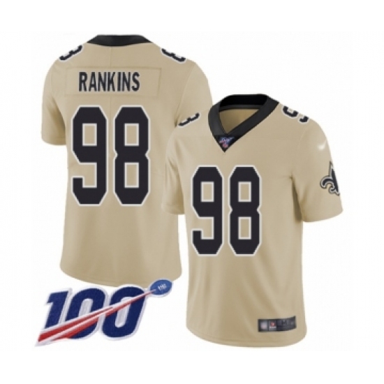 >Men's New Orleans Saints #98 Sheldon Rankins Limited Gold Inverted Legend 100th Season Football Jersey