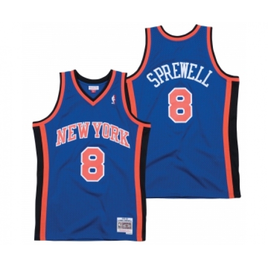 Men's New Yok Knicks #8 Latrell Sprewell 1998-99 Royal Throwback Stitched Jersey