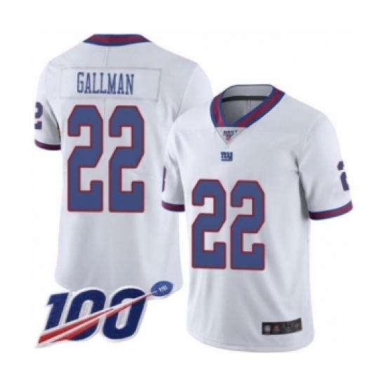 >Men's New York Giants #22 Wayne Gallman Limited White Rush Vapor Untouchable 100th Season Football Jersey