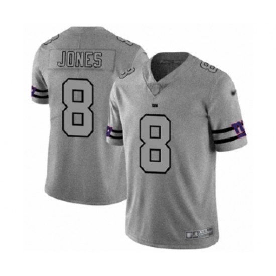 >Men's New York Giants #8 Daniel Jones Limited Gray Team Logo Gridiron Football Jersey