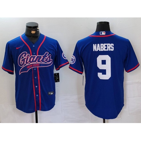 >Men's New York Giants #9 Malik Nabers Royal With Cool Base Stitched Baseball Jersey