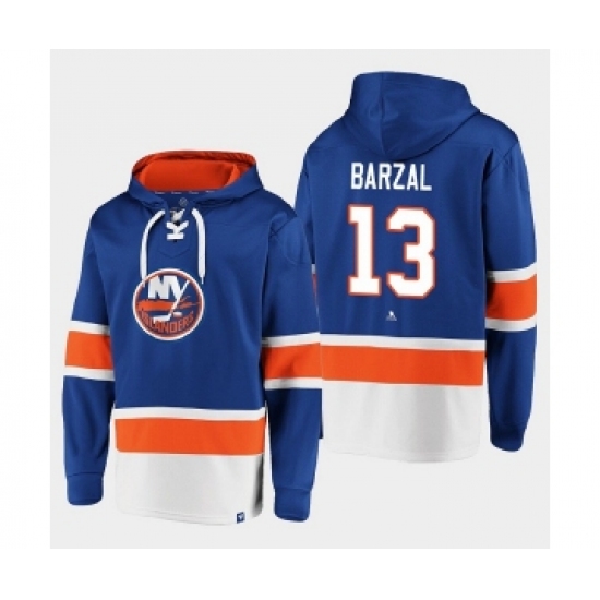 Men's New York Islanders #13 Mathew Barzal Royal Ageless Must-Have Lace-Up Pullover Hoodie