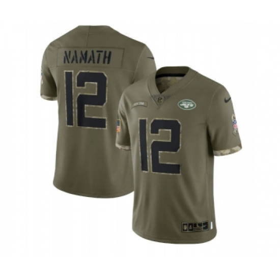>Men's New York Jets #12 Joe Namath 2022 Olive Salute To Service Limited Stitched Jersey