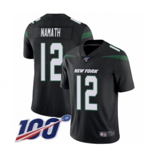 Men's New York Jets #12 Joe Namath Black Alternate Vapor Untouchable Limited Player 100th Season Football Jersey