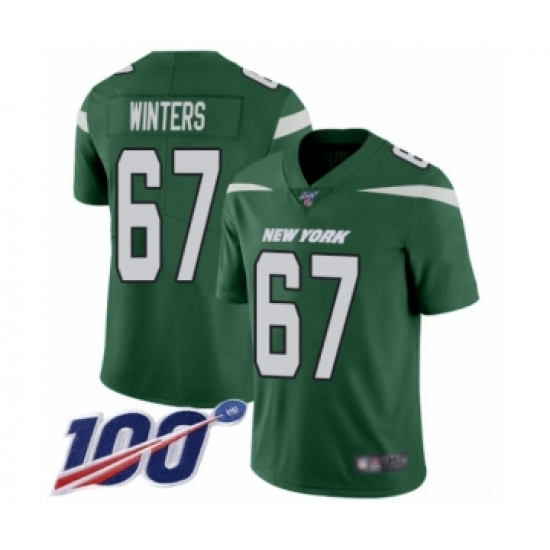 Men's New York Jets #67 Brian Winters Green Team Color Vapor Untouchable Limited Player 100th Season Football Jersey