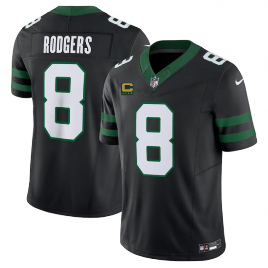 Men's New York Jets #8 Aaron Rodgers Black 2024 F.U.S.E. With 4-Star C Vapor Limited Stitched Jersey