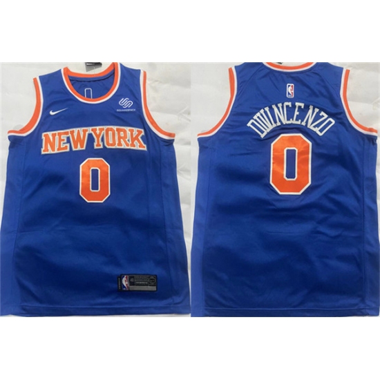 >Men's New York Knicks #0 Donte DiVincenzo Blue Stitched Basketball Jersey