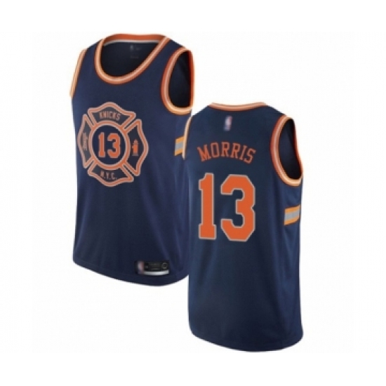 >Men's New York Knicks #13 Marcus Morris Authentic Navy Blue Basketball Jersey - City Edition