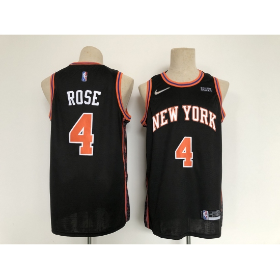 Men's New York Knicks #4 Derrick Rose Black City 2020-21 Stitched Basketball Jersey