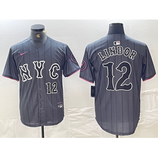 Men's New York Mets #12 Francisco Lindor Number Grey 2024 City Connect Cool Base Stitched Jersey
