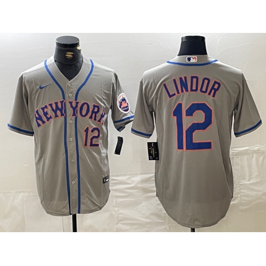 Men's New York Mets #12 Francisco Lindor Number Grey Stitched Cool Base Nike Jersey
