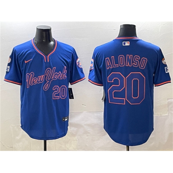 Men's New York Mets #20 Pete Alonso Authentic Royal Blue Team Logo Fashion Cool Base Baseball Jersey