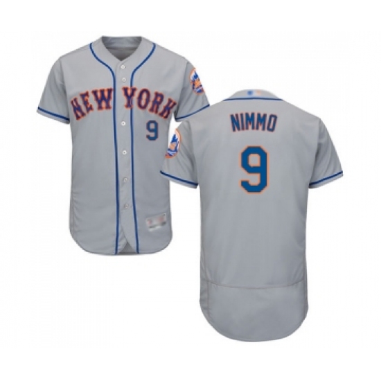 >Men's New York Mets #9 Brandon Nimmo Grey Road Flex Base Authentic Collection Baseball Jersey