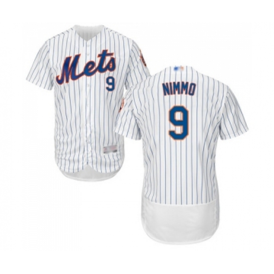 >Men's New York Mets #9 Brandon Nimmo White Home Flex Base Authentic Collection Baseball Jersey