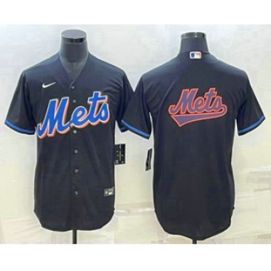 >Men's New York Mets Big Logo Black Stitched MLB Cool Base Nike Jersey