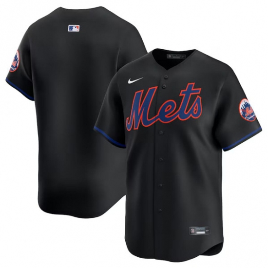 >Men's New York Mets Blank 2024 Black Alternate Limited Stitched Baseball Jersey