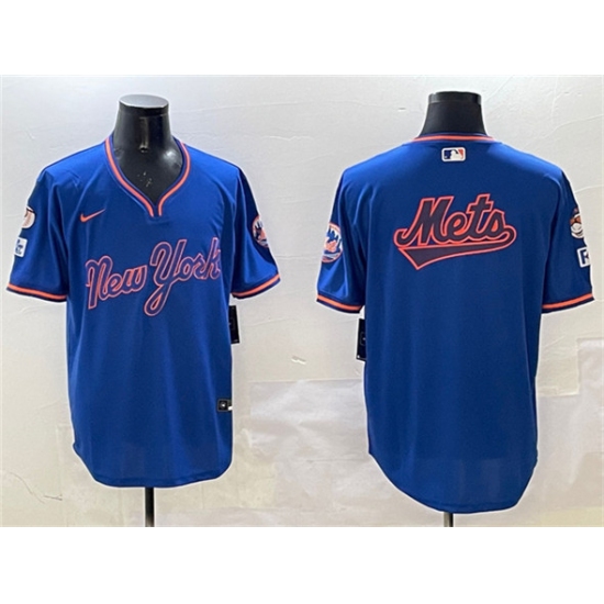 Men's New York Mets Team Big Logo Royal 2025 Spring Training Stitched Baseball Jersey