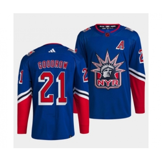 Men's New York Rangers #21 Barclay Goodrow Blue 2022 Reverse Retro Stitched Jersey