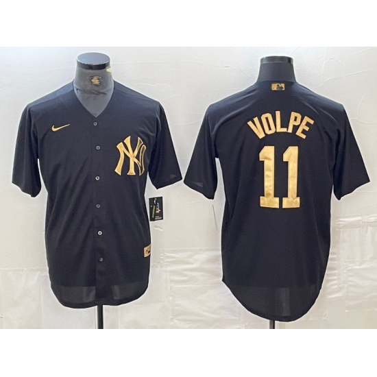 >Men's New York Yankees #11 Anthony Volpe Black Gold Cool Base Stitched Jersey
