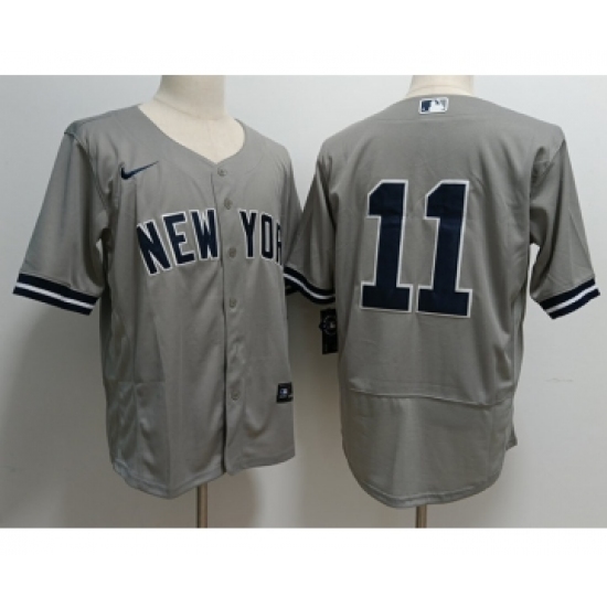 >Men's New York Yankees #11 Anthony Volpe Grey Stitched Flex Base Nike Jersey