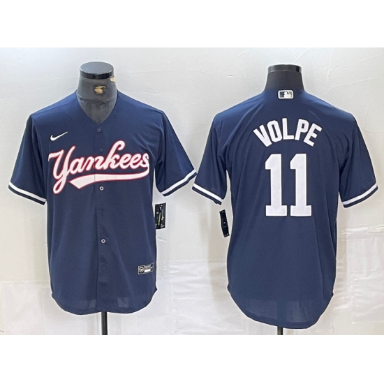 Men's New York Yankees #11 Anthony Volpe Navy Cool Base Stitched Baseball Jersey