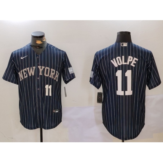 Men's New York Yankees #11 Anthony Volpe Navy Pinstripe Fashion Cool Base Jerseys