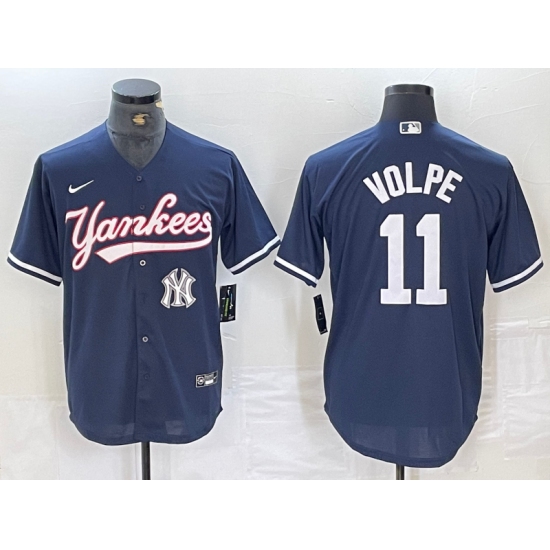 Men's New York Yankees #11 Anthony Volpe Navy With Cool Base Stitched Baseball Jerseys
