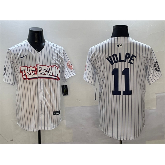 >Men's New York Yankees #11 Anthony Volpe White Bronx Graffiti Vapor Limited Stitched Baseball Jersey