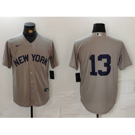 Men's New York Yankees #13 Jazz Chisholm Jr. Grey Cool Base Stitched Baseball Jersey