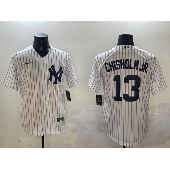 Men's New York Yankees #13 Jazz Chisholm Jr. White Cool Base Stitched Baseball Jersey