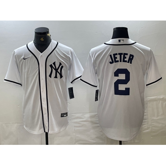 Men's New York Yankees #2 Derek Jeter White 2024 Cool Base Stitched Jerseys