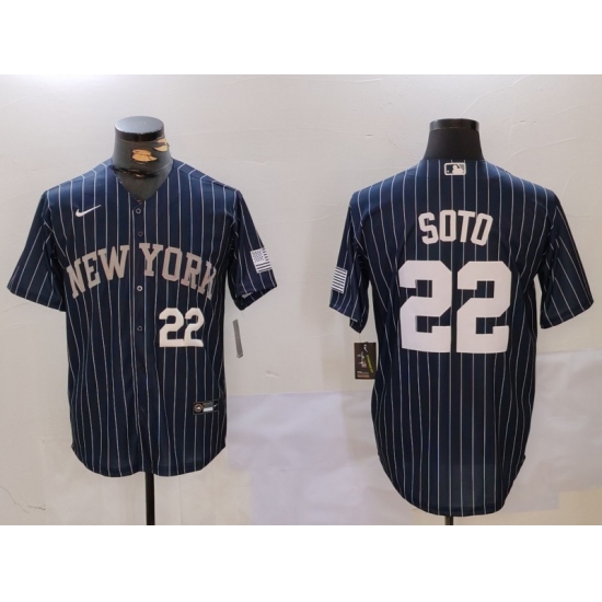 Men's New York Yankees #22 Juan Soto Navy Pinstripe Fashion Cool Base Jerseys