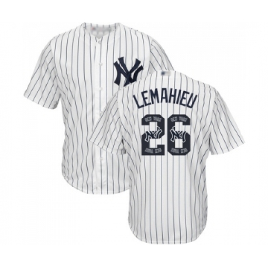 >Men's New York Yankees #26 DJ LeMahieu Authentic White Team Logo Fashion Baseball Jersey