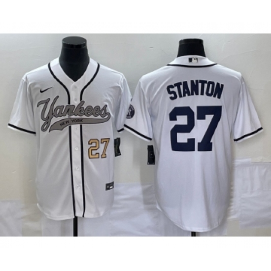 Men's New York Yankees #27 Giancarlo Stanton White Home Stitched Baseball Jersey