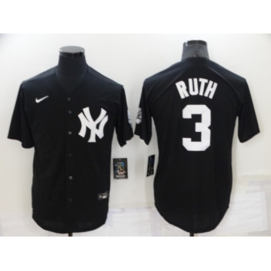Men's New York Yankees #3 Babe Ruth Black Stitched Nike Cool Base Throwback Jersey