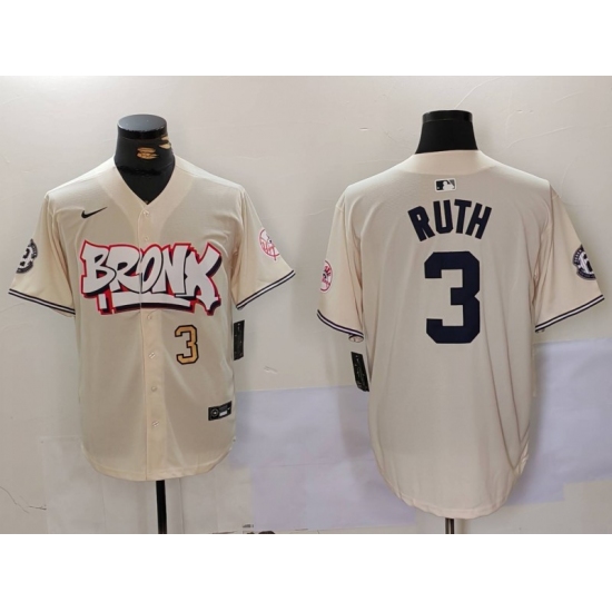 Men's New York Yankees #3 Babe Ruth Cream Limited Stitched Baseball Jersey