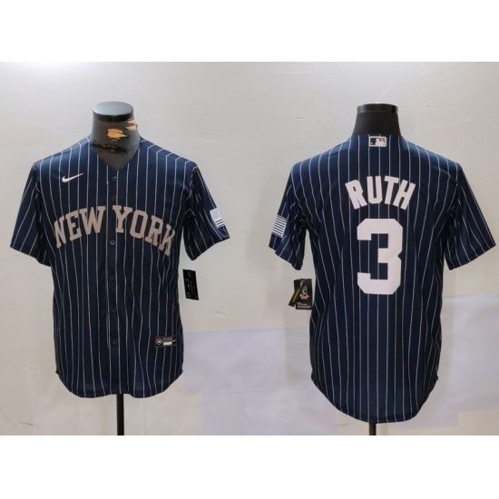 Men's New York Yankees #3 Babe Ruth Navy Pinstripe Fashion Cool Base Jersey