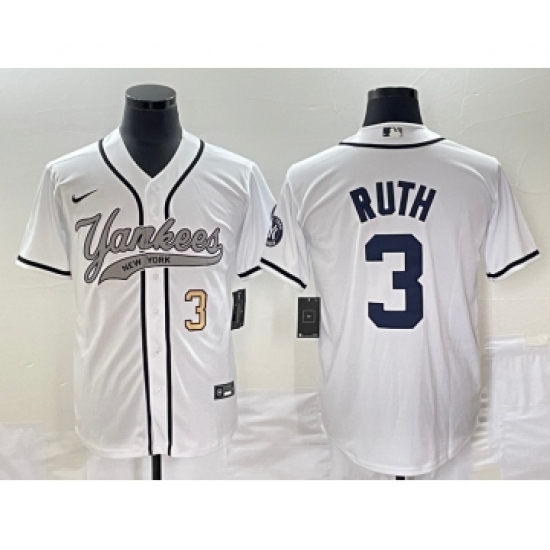 Men's New York Yankees #3 Babe Ruth White 2024 Cool Base Stitched Jersey