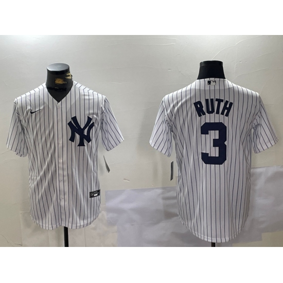Men's New York Yankees #3 Babe Ruth White Pinstripe Fashion Cool Base Jersey