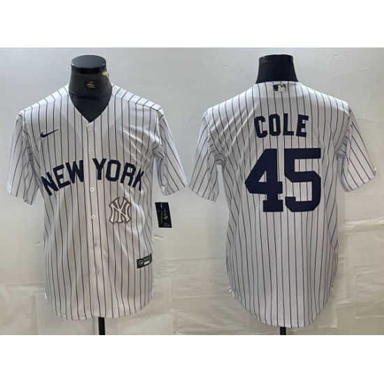 Men's Nike New York Yankees #45 Gerrit Cole White Home Stitched Baseball Jersey