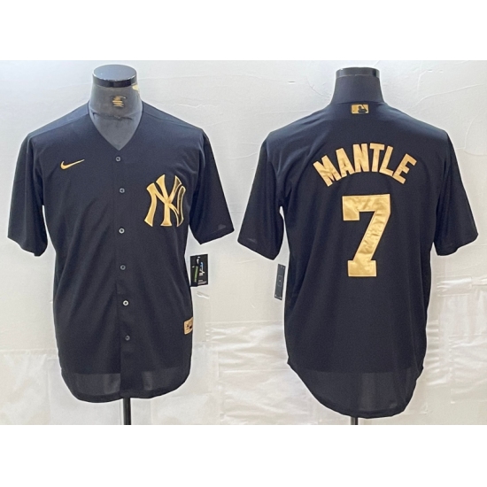 >Men's New York Yankees #7 Mickey Mantle Black Gold Cool Base Stitched Jersey