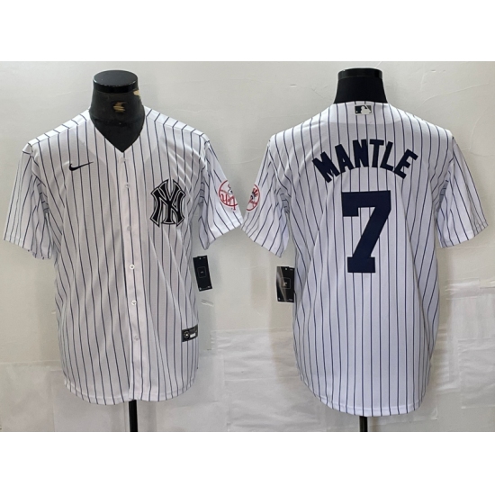 Men's Nike New York Yankees #7 Mickey Mantle White Home Stitched Baseball Jersey