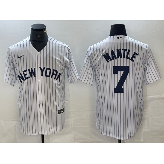>Men's New York Yankees #7 Mickey Mantle White 2024 Cool Base Stitched Jerseys