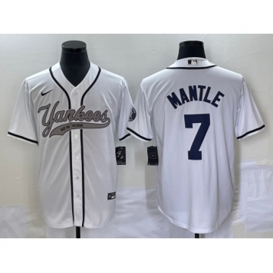 >Men's New York Yankees #7 Mickey Mantle White Cool Base Stitched Baseball Jersey