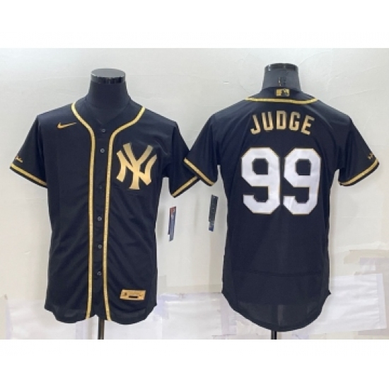 >Men's New York Yankees #99 Aaron Judge Black Gold Flex Base Stitched Baseball Jersey